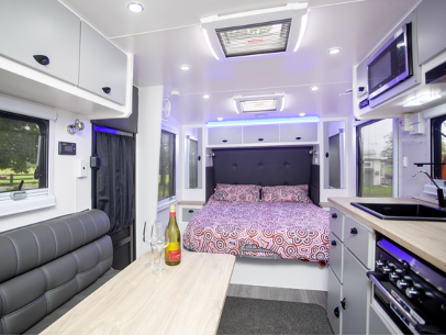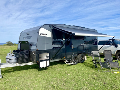 Caravan12 Caravans are available for hire including 2 person vans, 4 person vans, 5 person vans and a 6 person van. These come with ensuites (shower and toilet), fridge, cooking facilities and BBQ. The caravans are solar powered. You are welcome to also use the onsite camp kitchen, cool room and basic farm style showers and toilets. Maximum $725-$815 per van depending on the size of the van and number of people (total for 2 nights). |